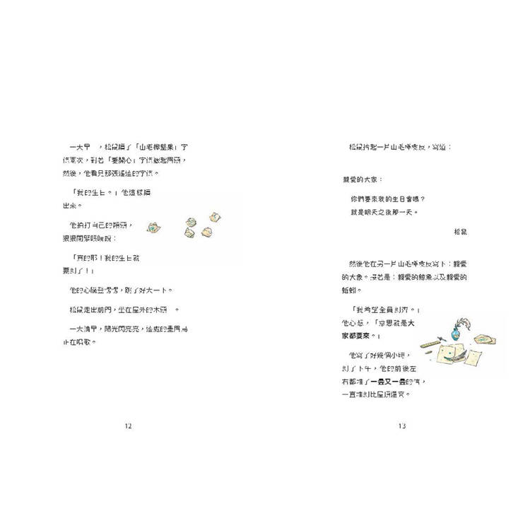 松鼠花了好幾個小時,寫信邀請所有動物來參加他的生日會,