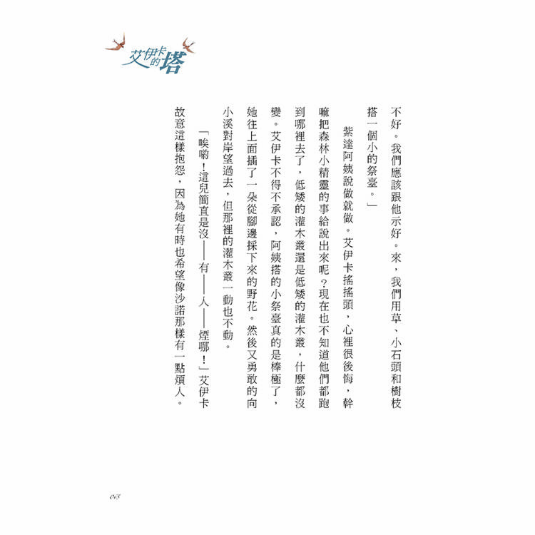 獲2000年「聯合國教科文組織寬容獎」提名!臺灣首次斯洛伐克語直譯繁體中文少年小說。青春期的少女腦中總有許多亂七八糟的想法,艾伊卡也不例外,在眾多的煩惱、複雜的情緒、不安的生活讓她在內心築起了小小的高塔,如果能爬上那座塔,艾伊卡是否就能接受「真正的自己」?