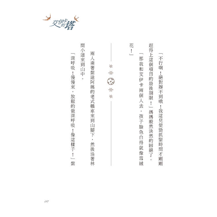 《艾伊卡的塔》這部情感細膩的作品,用溫柔間或慧黠的筆觸,道出十歲小女孩艾伊卡與媽媽共同生活的快樂與擔憂。讀者們看見艾伊卡生活中震盪的喜怒哀樂,隨著她的歡喜與煩憂,見證成長過程裡的蛻變與希望。