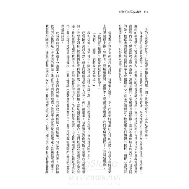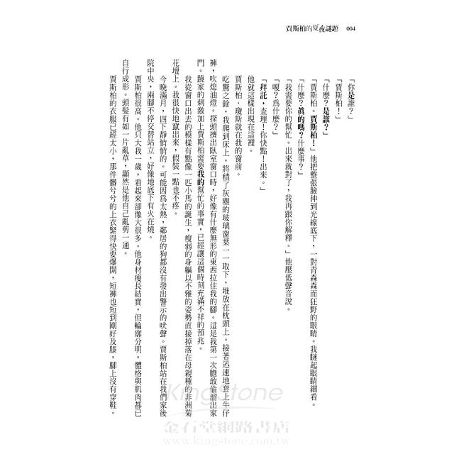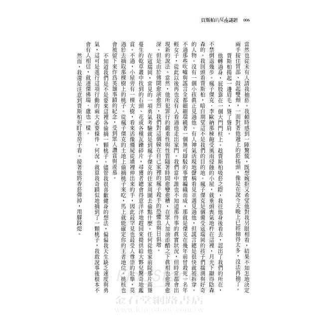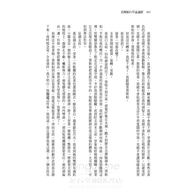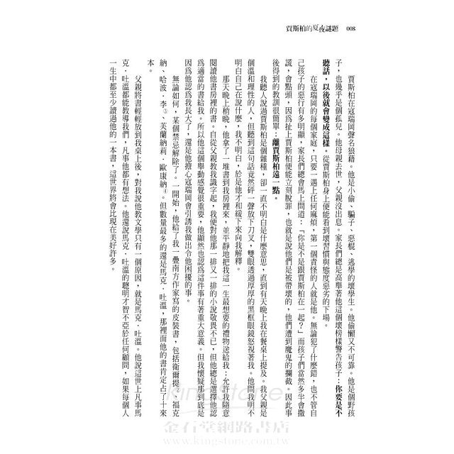 ※ 《賈斯柏的夏夜謎題》是一罐烈酒,由一場駭人的謀殺為瓶,內裝的酒液卻充滿了青春苦澀。在一連串的家族祕辛、家醜、家暴中,呈現更令人悵然的馬克‧吐溫式書寫,但是同樣迷人呢!