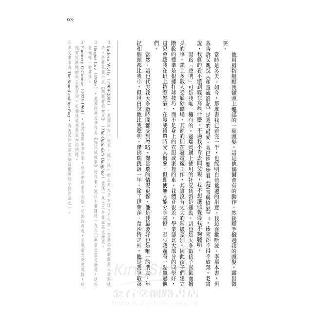 ※ 一本以精湛技巧探討友誼、種族與社會排斥等問題的小說……承繼了《梅岡城故事》和《頑童流浪記》的傳統,作者以動人的筆法,揭露了最平凡的日常生活背後隱藏的驚人秘密。