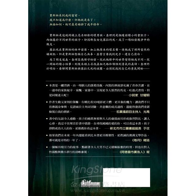 ※ 透過主角之一查理的眼睛,這部小說就像澳洲版的《頑童流浪記》,充滿了冒險、懸疑與難能可貴的真實。