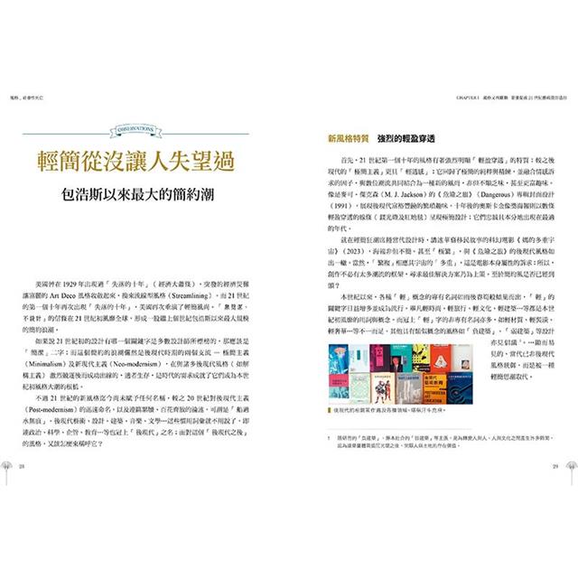 最後我們強調,歷史不該是記憶的負擔,也不該是久遠陌生的事物,我們無須擔心歷史成為創作時的羈絆;忽視對歷史規律了解的人,在未來的旅程中將只是個無所準備的匆匆過客。⋯本書呈現縱貫數千年的風格史,竭力揭開其背後的神秘面紗;就像剝洋蔥一般,我們一層一層撥開表象化的風格外衣。通過對不同風格歷史興衰的回顧和分析、對風格演化背後深層原因的探究,讓您了解隱藏在社會深處的悸動及其潛藏的規則。⋯希望透過本書,讓您在面對世界不斷變化的潮流時,能夠多一份底氣去做出成熟的判斷與選擇;能夠在這場關於風格的永恆尋找中,發現更多的啟示和感悟。