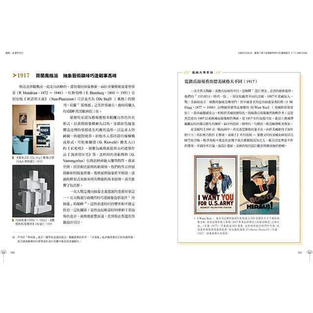 緊接的章節則以「逐年」論述方式探究20 世紀、人類藝術設計史上極為輝煌的100 年,也是人類史上最波瀾壯闊的百年。這是前所未見的寫法;其目的是讓讀者更清晰地理解風格是如何在「社會制約」下一步步演變,包括哲學思維對風格的影響。最後針對前述東西古今整個歷史現象的驗證後進行論辯與歸納,提出六項「風格形成假說」。另以「後現代」風格為研究對象,經數據實證統計,發現歷史上「風格特質」相似者,在「時代精神」上亦有極高的雷同性。最末,補述了「唯物」、「唯心」與「心象」立場的影響,並說明「風格未來學」的重要。