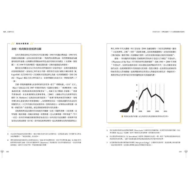 作者一語中的,點出操弄潮流風向的,向來不是藝術家或設計師本人,而是經濟貧弱的國家斷無成為風格領頭羊的可能。好比達文西之所以撐起義大利文藝復興一片天,是背後資產階級傾力撐腰;巴洛克之所以風靡,是路易十四帶頭,成了全民運動。遑論為何日本浮世繪影響西方藝文,甚至自1945年後,美國幾乎掌握大部分藝術新觀念與新類型,這一切無非經濟與社會說了算。