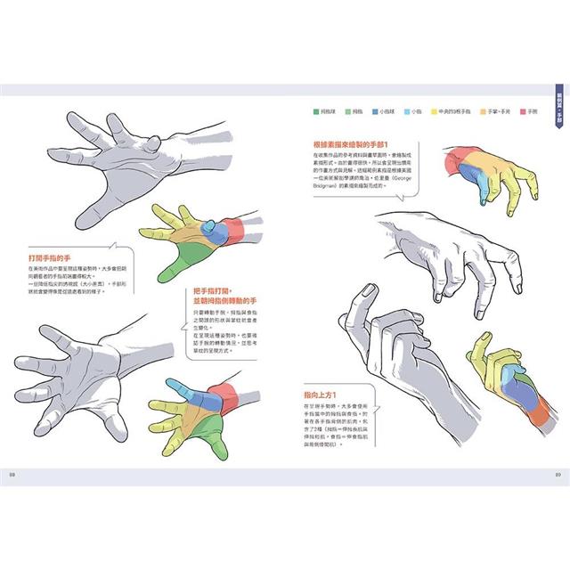 ➢深度解剖手與腳。從骨骼、韌帶、關節、肌肉、紋路、動作⋯⋯都詳細說明。