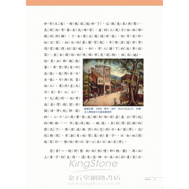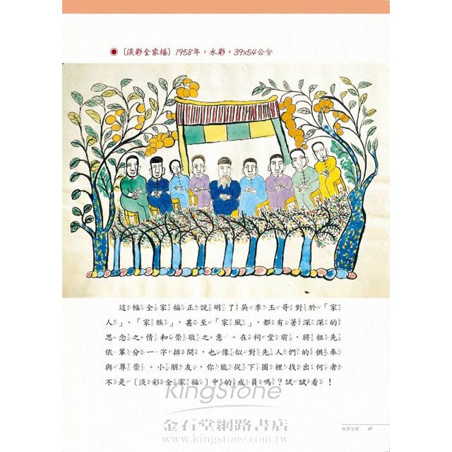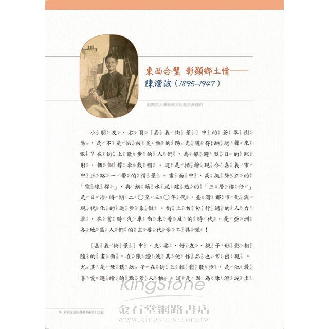 本書挑選了臺灣美術史上具有代表性的八位畫家,期望帶領小朋友建立起對臺灣美術的認知基礎,進而培養鑑賞的能力與豐富的美感經驗,並誘發出內在的感受力量。
