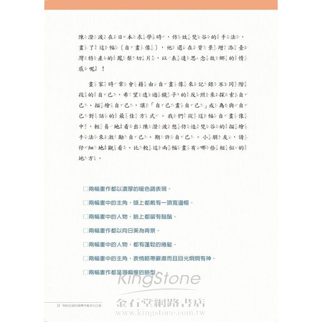 瞭解臺灣,從美術史入門也是一種很好的途徑,小朋友可從喜歡的畫作,從中追溯畫家當時的思維,畫家的時代際遇,和畫家表達的手法,看畫家用什麼形象,刻畫出時代的脈動與時代的容顏。