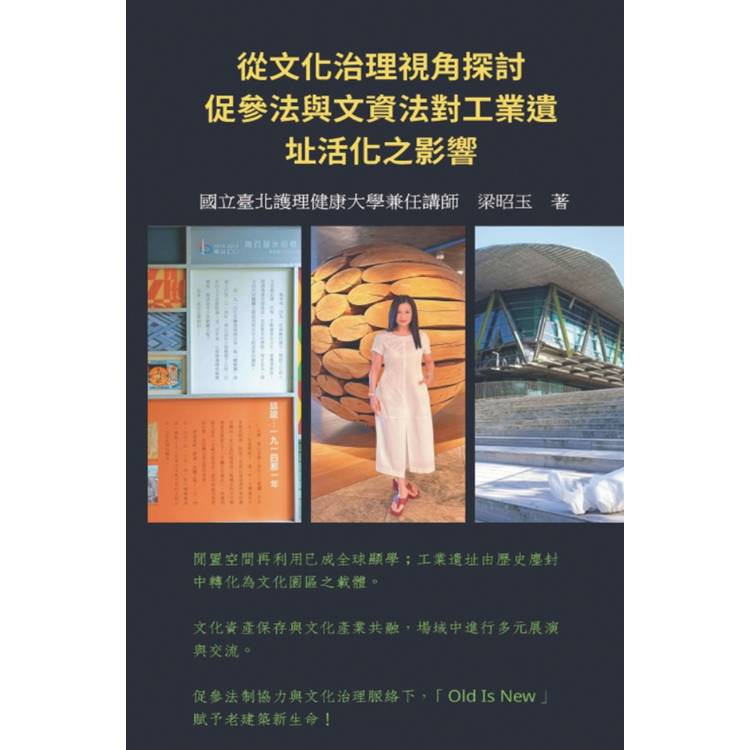 基於此,昭玉老師出版此書:《從文化治理視角探討促參法與文資法對工業遺址活化之影響》。以文化治理的核心概念主軸,分析雙法在公私協力與文化治理中的相互作用,更探討雙法對工業遺址的影響,以及雙軌體制於歷史場域運作之互動關係,分析其中潛藏之治理矛盾與整合可能,進而提出不同法規間整合、建立協調機制,並建構一套回應現實挑戰之整合性文化資產再生策略,對未來歷史空間政策之法制調整與治理模式,提供理論基礎與實務參照。最後再以促進雙法的有效運作,達成歷史空間活化與文化資產保存的平衡,藉以檢視我國對工業遺址的活化進程,究竟發揮出何種效益與可能之缺失提供建言。