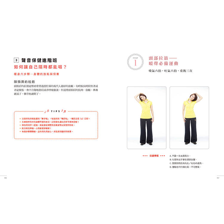 加強身體肌肉訓練,了解正確的共鳴位置,再配合書中的step by step,再難的技巧都學得會!