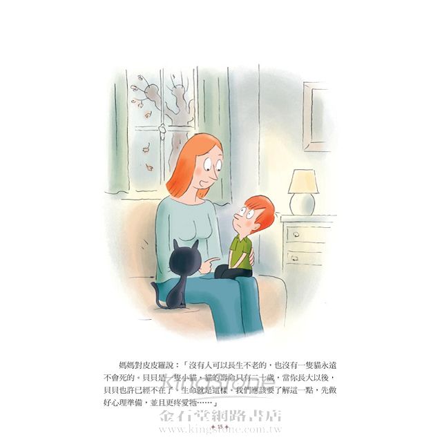 很多人都說這一本薄薄的繪本書應該會很難賣,但我還是對它愛不釋手,每次讀完都覺得心暖暖的。《為什麼貓咪會離開》敘述著小男孩皮皮羅以為自己心愛的貓咪貝貝死掉了,難過的跑去找媽媽哭訴,聰明的媽媽趁此機會和皮皮羅討論起死亡這件事……「死亡」這個讓孩子害怕、讓大人避之惟恐不及的話題,在故事裡卻透過皮皮羅和媽媽溫暖的互動與談話,讓人讀起來覺得可愛、輕鬆,一點也不覺得沉重。