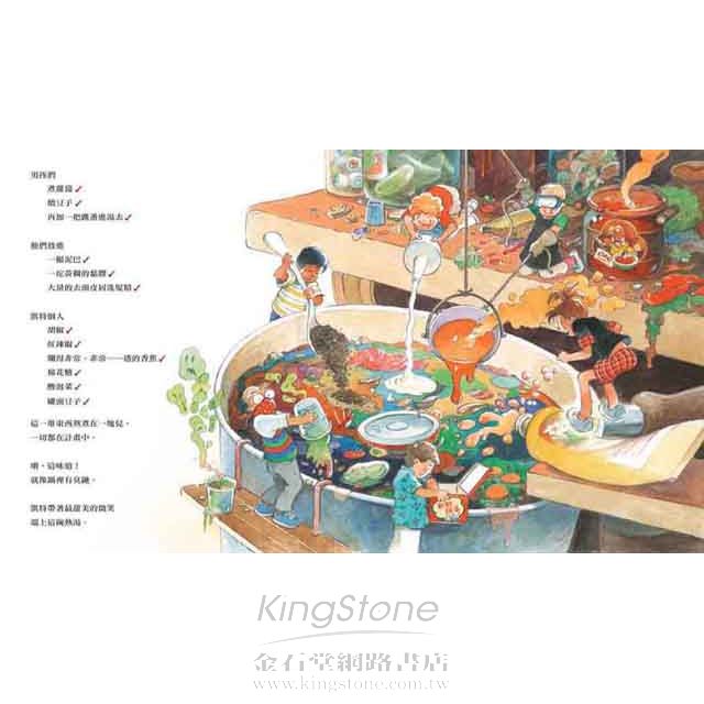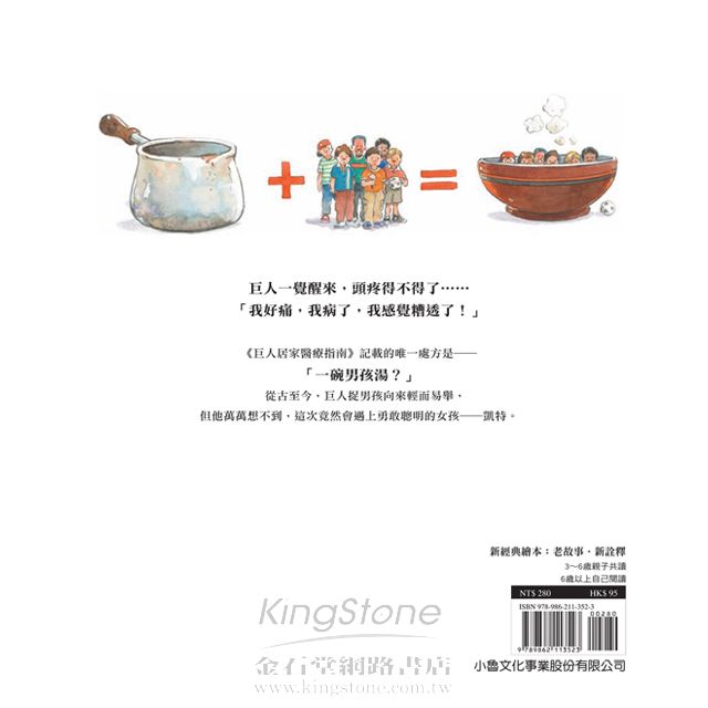作者蘿莉絲‧蕾辛斯基將過去看似有點兒血腥的經典環節,轉換成有趣又創意十足故事,「男孩湯」究竟是男孩做的湯,還是男孩來做湯?初次登場的機智女孩──凱特,又會帶給巨人什麼樣的當頭棒喝?自小熱愛漫畫與卡通的繪者邁克‧馬薛可,亦將其風格融入書中,為經典故事注入嶄新風情。