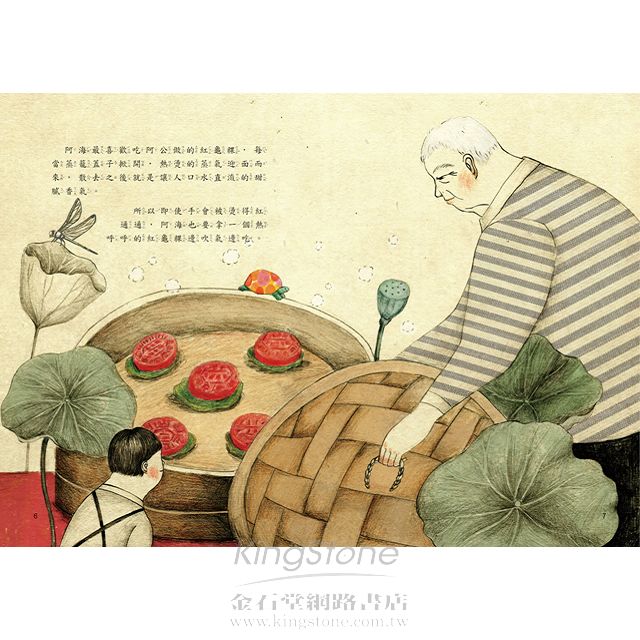 詩意的畫面,含蓄的文字,讓傳統的紅龜粿蛻變出前衛造型,將人生的缺憾柔化成童心的想像。一個紅龜粿印模,模印出了民間滋味,也模印出了祖孫之間的三代情。