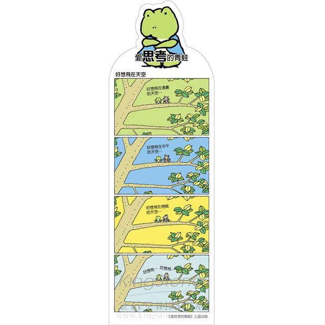 →小青蛙思考的行進方式,節奏非常好,跟著他一頁一頁讀進去,「天空究竟從哪裡到哪裡?」值得深思再深思!