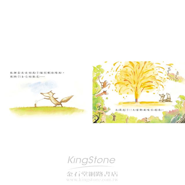 美麗的煙花最好藏起來自己欣賞,於是,獾帶著狐狸,一路尋找沒有人的地方,過程中的處處阻擾、千里跋涉的辛苦,把這份只想自己欣賞的決心,表現得淋漓盡致、生動有趣。然而計畫趕不上變化,原以為找到了專屬兩人可以獨享煙花的隱密地方,卻沒料到,在點燃煙花後,遠處山腳下所有的動物也能齊聚圍觀同樂了。結局跳脫讀者既有的想像,帶來意想不到的驚喜趣味,相信孩子閱讀完故事,也會對這樣幽默的結局以及這對絕妙好朋友,忍不住莞爾一笑!