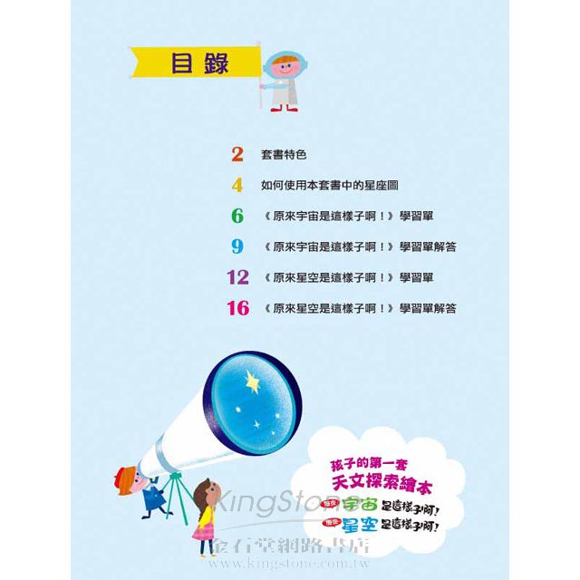◎本套書附贈《學習手冊》,是親師最佳的輔助教學教材,也是幫助孩童輕鬆學習天文知識的最佳工具。