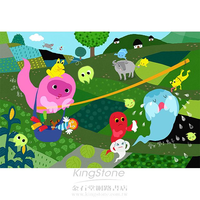 鬼,可怕嗎?陳盈帆創作出一群大鬼、小鬼、愛哭鬼、貪吃鬼……,你可以找找看,還有什麼藏在圖畫中的鬼呢?