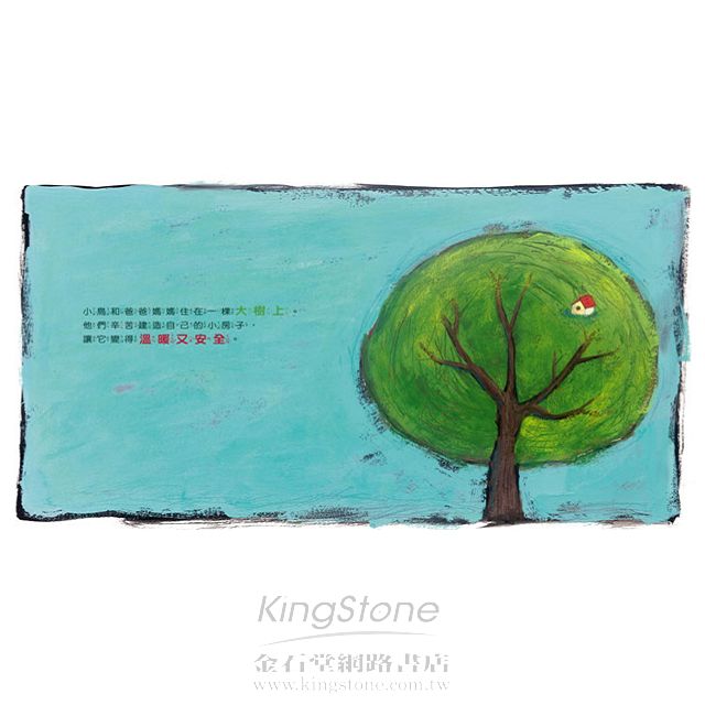 小鳥和爸爸媽媽住在一棵大樹上,他們辛苦建造自己的小房子,讓它變得溫暖又安全。有一天,小鳥跳到屋外,看見美麗的世界,有花、有樹、還有天空,可是就那時候,她的幸福感被一隻大黑鳥破壞了……。這是一個關於兒童遭遇傷害的故事,希望能夠幫助小朋友更有能力反抗那些不能接受的行為。