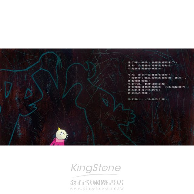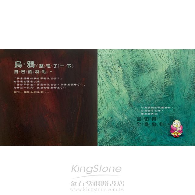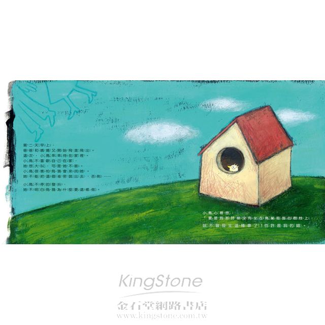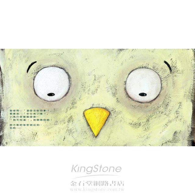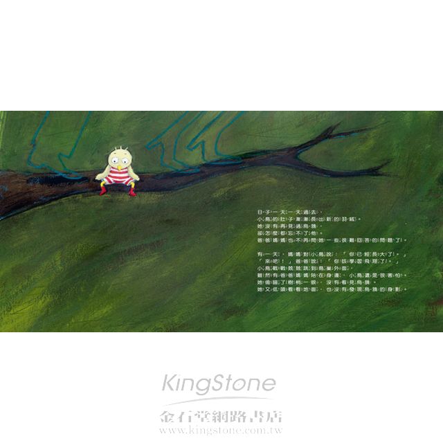 透過具實與隱喻交疊的文字和圖像,讓閱讀的小孩從故事的進行中去觀察和思考小鳥發生的事,也去體會和感受她的恐懼、不安、疑惑和傷痛,也讓小孩看見小鳥的父母如何為她建立自信,使她重新得力,從傷痛中站起來,懷抱信心展翅飛翔。
