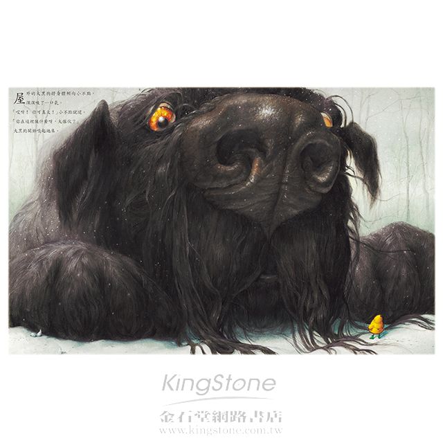 永遠記得2012年9月,當我從版權代理收到《大黑狗》的審閱圖檔,那種極度驚豔的感動。看著一張張以細膩筆法及華麗色彩,勾勒出怪誕細節的趣味性,卻恰到好處的保有優雅氣息的插圖,立刻深深被勾進作者李維‧平弗德所營造的那個下雪日與大黑狗追逐的壓迫感。