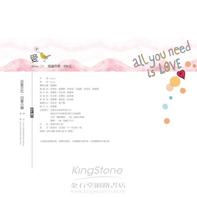 ◎小巧思大驚奇,階梯式排列的不同尺寸插圖,組合成一顆色彩豐富、彩虹般的愛心。