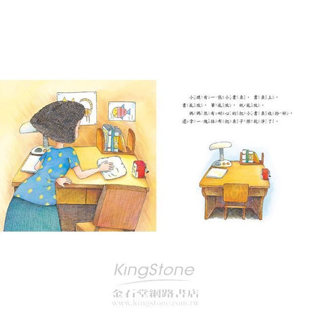 那天下午,小琪的好朋友小珍珠來家裡玩,睜大眼睛說:「小琪,你的房間好整齊,好乾淨啊!怪不得你上學期得了整潔獎!」