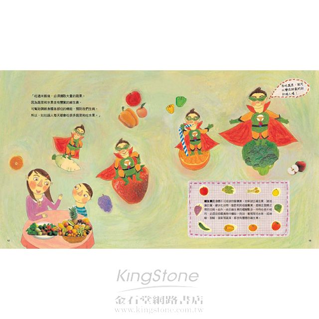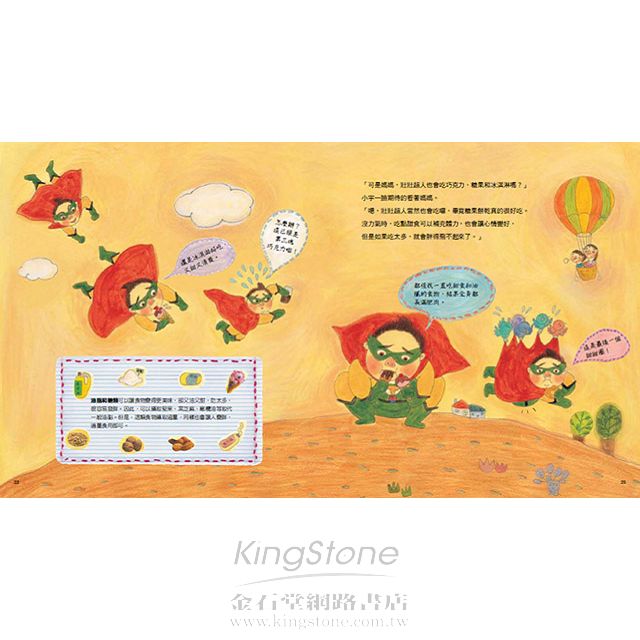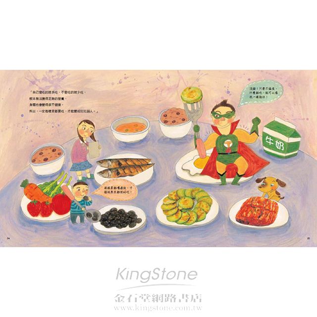 2.透過精采有趣的圖畫及故事內容,引領大眾建立正確且健康的飲食觀念,拓展孩子的視野。