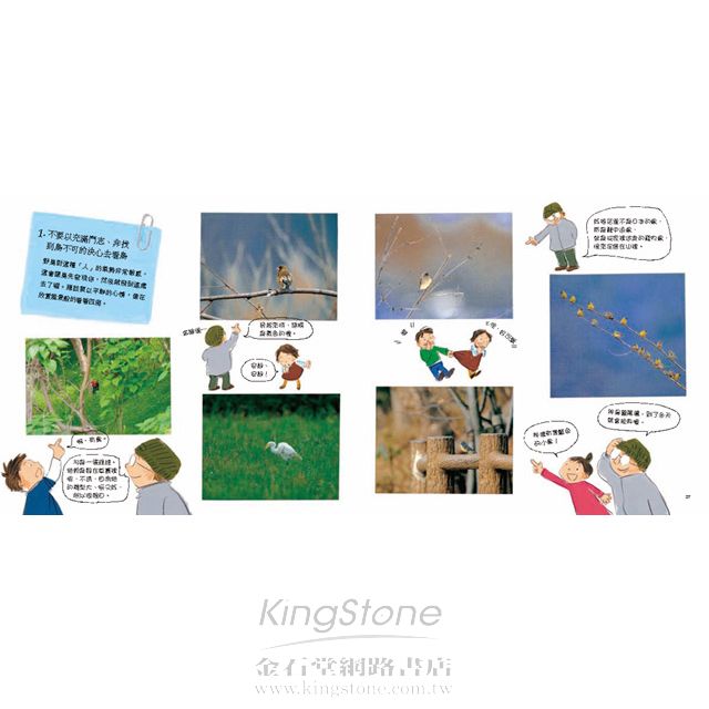 這不是一本圖鑑書,您不必在意一定要記住鳥類的種類或學名。作者松橋利光是日本著名的動物攝影師,擅長以平易近人、活潑生動的文字及攝影作品,介紹各種生物的科普知識,特別強調只要和動物們「做朋友」就行了。