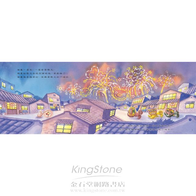記得小時候,接近元宵節的前幾天,家裡的姊妹和鄰居總會收集牛奶鐵罐,然後拿著鐵鎚、鐵釘在鐵罐上打洞,有的打成花形、有的打成圓形,再用鐵絲綁上可提的木條,裡頭插根蠟燭,一個手作的燈籠就成型了。元宵節的晚上,大家提著燈籠去學校裡冒險,燭光透過燈籠上一個一個洞所拉出的燈影,妖魔鬼怪似的,感覺好像什麼奇妙的事情會發生,所以元宵節的夜晚總是帶給我神秘、奇幻的想像。長大了以後,我把這些奇想一幕一幕的連結起來,編寫了劍獅幫助乞龜完成人們祈福願望的故事。