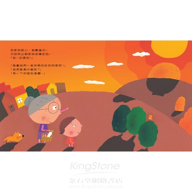 在本書中,我把記憶中的晚霞變成了米飯,在泥土中生長的蔬菜變成熱騰騰的湯。我希望生長在現代的孩子們,也能夠接觸到大自然與土地,並與其連結,帶著這樣的期盼製作了這本書。