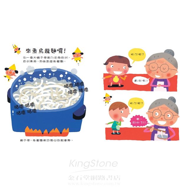 好吃的烏龍麵是怎麼做成的呢?奶奶帶著小奈奈磨麵粉、揉麵團、切麵條、煮湯頭,一起做出了超Q彈、滑溜溜又香噴噴的烏龍麵,哇,真是太好吃了!