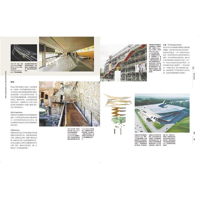 書中的每一章都包含一篇短文,加深該章主題的深度,並為對建築史、建築理論和批評有興趣的讀者,提供進一步的研究建議。最後,對有意發展設計入門課程的同僚們,希望本書的每一章都能蘊生出一個構想,進而滋養出自身的設計練習,或是當它與其他主題結合時,能啟發出更複雜巧妙的一些課題。期待能激發對於建築的新舊興趣,同時引介出可能包含在建築語言裡的無限詩意。