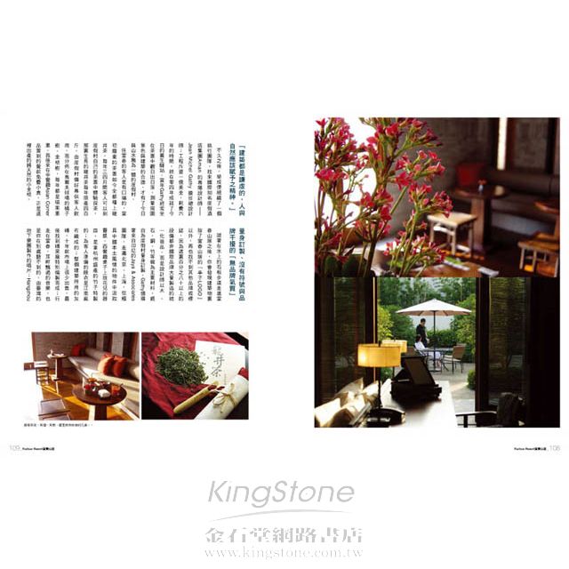 美國《TIMES》雜誌選出最具特色的“Small but Boutique”飯店,北京的The Emperor Hotel皇家驛站名列前茅;時尚趨勢指引、全球知名的”Small Luxury Hotel”系統,杭州Fuchun Resort富春山居是國內外低調潮人的最愛;入圍Wallpaper DESIGN AWARDS 2010 BEST HOTEL的北京瑜舍,巔覆想像的驚人視覺感;還有說到中國的現代旅館設計,就不能不認識的長城腳下的公社。從中國設計旅店,看見現代最重要的設計師,傾盡全力打造的新東方風格空間。