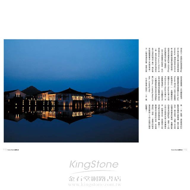 國際飯店連鎖品牌集合第一流建築師與空間設計師的最新力作:Park Hyatt花園凱悅、Four Seasons上海四季、Shangri-La香格里拉、Peninsula北京半島、Banyan Tree悅榕莊、Aman Resorts安縵集團……。看世界最頂尖的飯店集團,如何再一次打造出超越以往、融合傳統與現代的經典旅館。