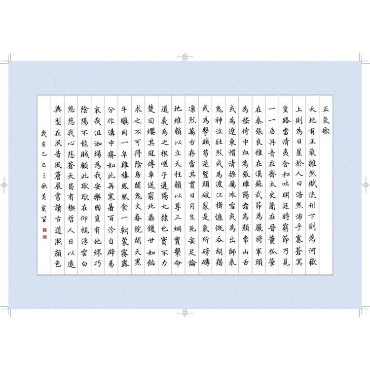 完整呈現黃寶宜老師自運〈正氣歌〉的全文、落款與用印,細細欣賞老師每一筆、每一字的力量,感受文章深厚意境。