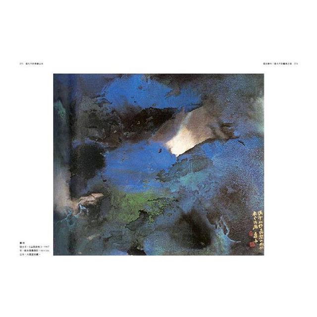 晚年他身處歐美,感受到抽象表現主義的世界潮流,他畢生致力的中國青綠山水傳統,在故國之思的催化下,忽然在異鄉開花結果。他的潑墨與潑彩風格相繼誕生,其中有爆發性的激情,也有夢幻而詩意的抒情,開中國山水畫(中國繪畫最核心的藝術類種,米芾:山水心匠自得處高也)前無古人之新境。
