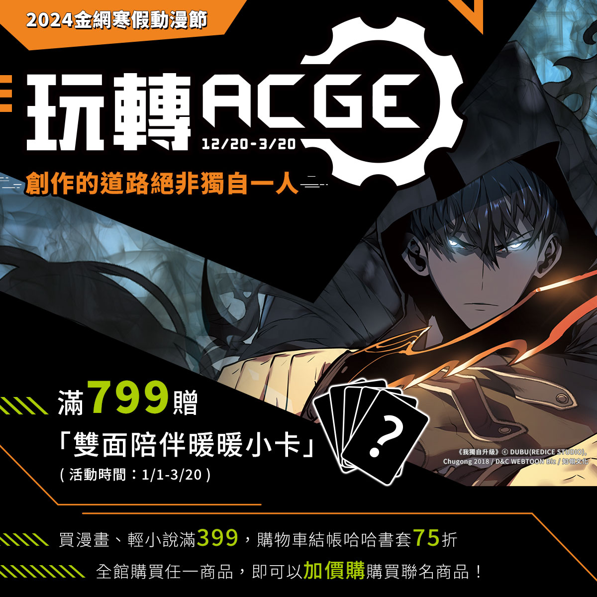 購買漫畫、輕小說、同人誌、周邊精品等,達到滿額門檻$799,就能獲得一張隨機小卡。