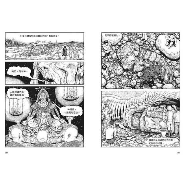 原本是設定高山上有一座鹽水湖,碰觸到的生物骨頭都會被溶解,只剩下皮肉。主角是搜救隊之類的人員,前往調查登山客大量死亡案件,最終發現原來那座湖是上古時代引發大洪水的水神的遺骸,最終水神復活,蒸發回到地球的水循環中了。我不太確定為什麼故事會變成現在的版本,可能是因為我想畫很多怪物吧,結果連載時好像因此成為了全系列最受歡迎的一篇。不過原本的故事我可能哪天還是會回頭再拿出來畫。
