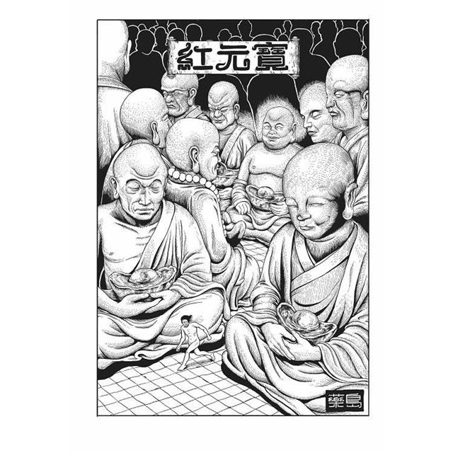這篇試著換了個筆刷,但其實也就只是線條更細而已,後來要畫其他篇時一度在猶豫是要用這個線條去畫還是用〈宇宙的幽靈〉的線條去畫,編輯建議用後者的方式去畫。現在覺得好險,不然線條這麼細我不知道要刻圖刻到何時。