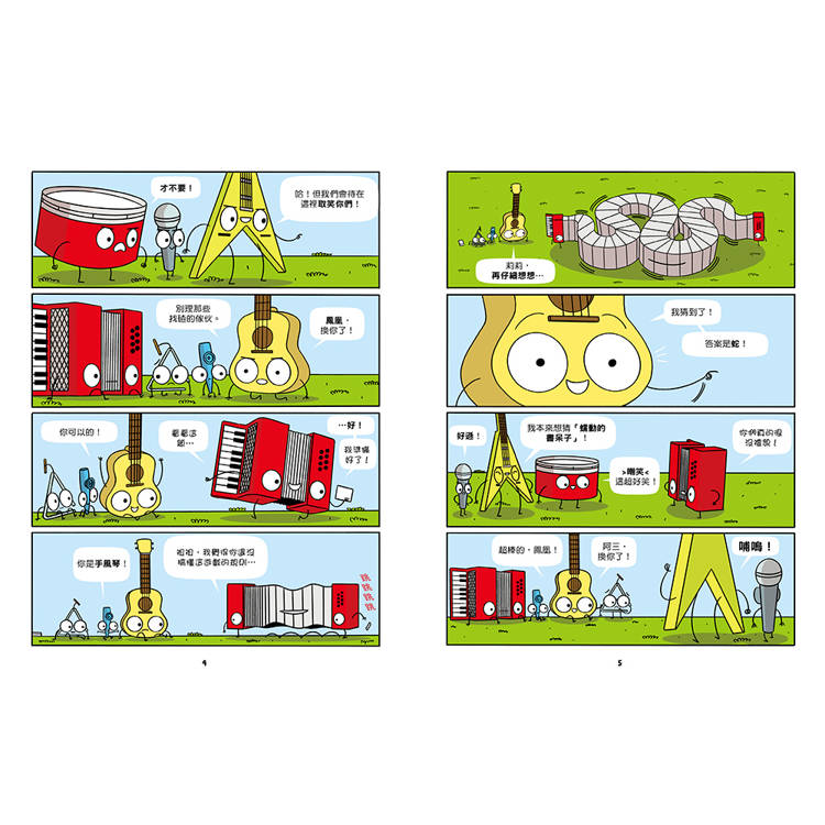 很有趣的故事! 邀請有想像力的你,想像各種樂器擬人化之後參加音樂夏令營。接下來會發生哪些好玩又出人意料的事呢?讓我們一起看下去!