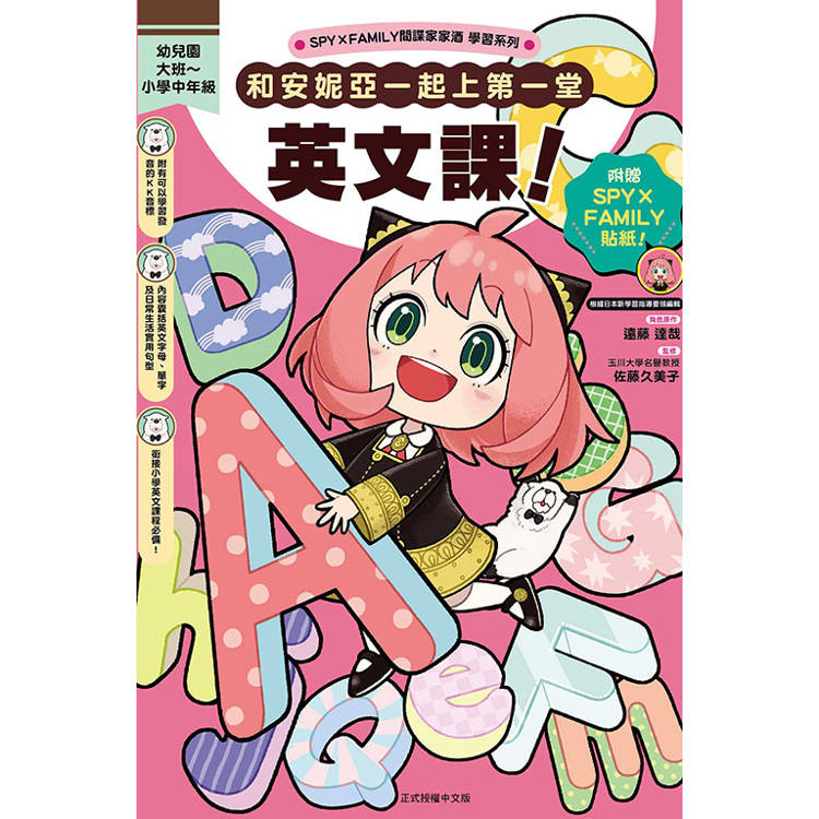 全球熱賣的漫畫作品「SPY×FAMILY間諜家家酒」,這次推出專為小朋友設計的入門學習書系列!「英文課」學習書當中設計了許多有趣的單元活動,帶領小朋友認識英文字母、單字和句型,也有許多寫給家長的小訣竅,幫助小朋友和安妮亞等漫畫角色一起從遊戲中學習,為將來打下良好的基礎!