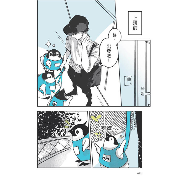 ✦全書以青色為基調呈現,具有特色的手法將企鵝的可愛表現得活靈活現。
