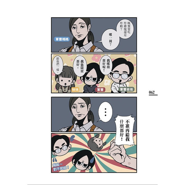 ▍接住伴侶的最強典範,一句話撫平所有煩惱、壞心情沒想到因下雨而泡湯的約會,變成了令人心動的深刻回憶~本來焦躁著來不及出門的心情,因為小鬍子一句話就緩解了!?忘記帶活動門票,老公非但沒生氣還變成了幸運之旅!疲憊想偷懶不做家務的日子,竟然也能得到令人怦然心動的安慰……▍神腦內運作!優雅化解人際、壓力、工作困擾的超強人類不擅長被稱讚、總是過於謙遜,就學鬍子「用你的魔法對付你」!不想被覺得太消極?微調話語的「結尾重點」,能讓對方留下正向印象。不懂事的人硬要聊尷尬話題,就要搪塞得毫無轉圜餘地~被朋友臨時放鴿子有什麼好生氣的呢?現在就來約會吧!50萬粉絲大呼痛快!讀後煩悶一掃而空~最能及時穩住震盪壞心情和生活壓力的人間典範,就是偶爾白目但幽默風趣、情緒穩定又真誠的鬍子老公!