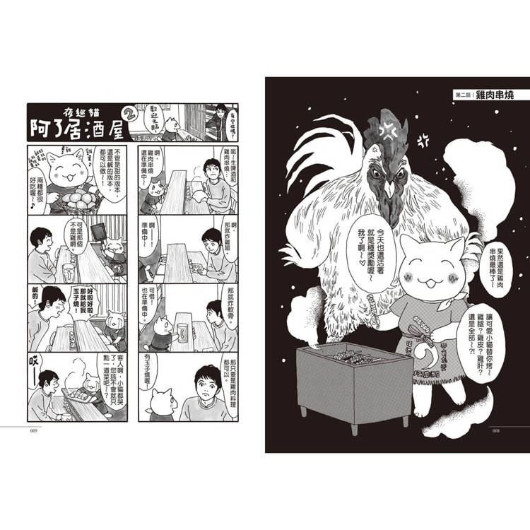 在《夜巡貓》系列作裡擁有超高人氣的迷人角色——阿了,這次放下實習生的身分,以「居酒屋老闆」的頭銜強勢回歸!《阿了居酒屋》是《夜巡貓》系列作的首部外傳,描繪阿了開了一家居酒屋,並與各式各樣的客人相遇、交流的溫暖日常。自稱可愛小貓的阿了老闆將用聊天、美酒與料理,款待那些有點寂寞的人、以及心中藏著無法對他人訴說事情的人類與動物們。