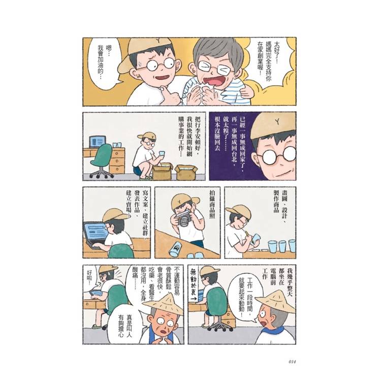 開始之後,我才發現出書跟我原本畫的網路圖文,是完全不同的事情。以前一個故事,十張圖就可以結束,但書不是。這本書要不要分成一段一段?還是要變成一個完整的故事?要用什麼形式出書,一般的圖文書,還是直接把網路的圖文集結出書?後來我決定用漫畫來說我的故事。
