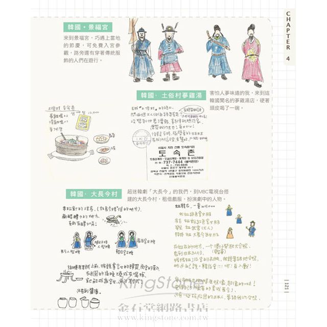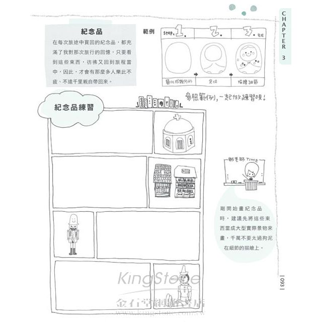 手繪初學者可翻開CHAPTER3,拿起筆直接在書上或另外準備的本子上做練習;在CHAPTER1,可以依需求找到適合旅程的本子,也可以動手做自己專屬的本子;購買工具之前,看看CHAPTER2關於作者對工具們的小建議;最後,來到CHAPTER4,創作自己的旅遊筆記前,先跟著作者的本子們一起去世界各國旅行,或者分享生活中的點點滴滴。