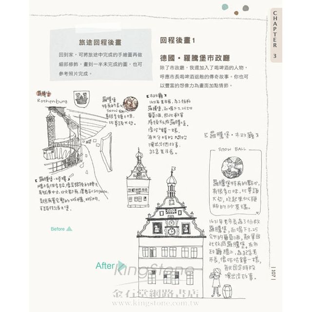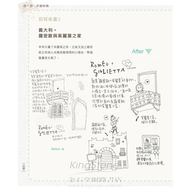 ◎除了基本繪圖技巧、方法外,加入作者遊歷各國第一時間的手繪圖稿,在學習手繪的同時,還能來趟紙上旅遊。