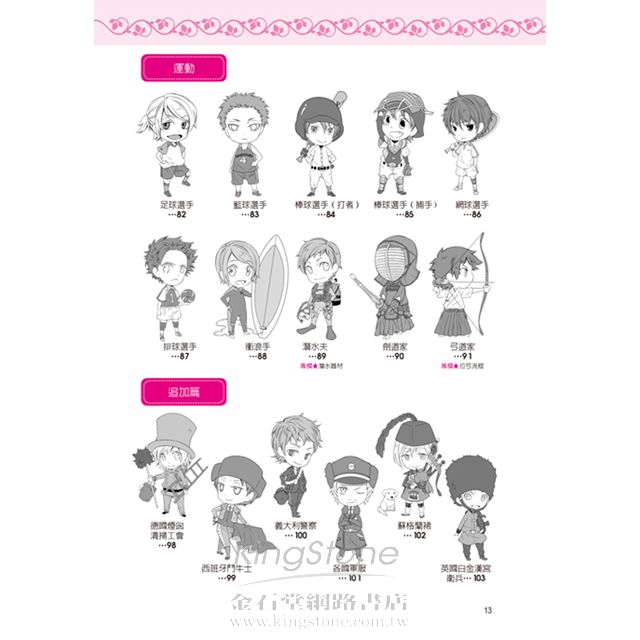 人物身體比例、服裝材質、皺褶的畫法、西裝與和服的畫法、動態姿勢的畫法……等等。只要掌握訣竅,就能畫得更傳神。