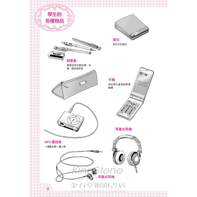 如此一來,讀者得以更精準、且具體的描繪出各行各業的人物形像。此外還收錄各個職場實際使用的小道具。在繪製插圖背景,或是想要讓角色攜帶物品,這些小道具的知識將可以派上用場。
