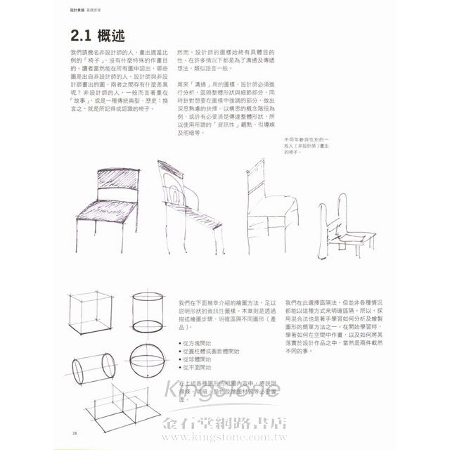 設計素描嵌入了許多繽紛層面的過程。素描領域既生動逼真又瞬息萬變,繪圖的重要性與設計過程息息相關。設計師需要透過以背景呈現的圖樣及素描,來表達其思維與想法。這需要有效繪圖的技能,提供圖樣的功能及其易讀性。《設計素描 – 基礎原理》可視為第一本著作《設計素描 》的「基礎篇」,本書以形式研究為重。透過逐步說明以指導如何繪圖,讓讀者運用不同技巧,學習如何以手繪及數位方式,有效率地繪圖。